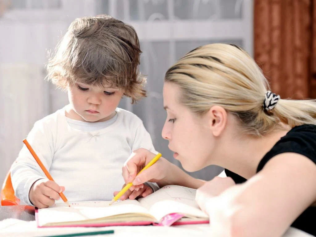Обучение ребёнка. Например, учить его писать, читать, считать, рисовать, лепить, возможно